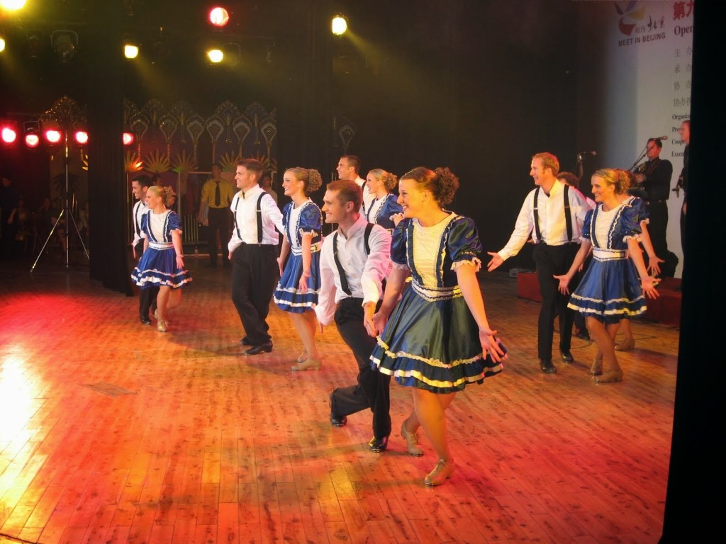 Performing a clogging dance number in Beijing, China with the BYU Folk Dance Ensemble, May 2009. That guy in the center of the photo, skinny skeleton neck, that’s me.
